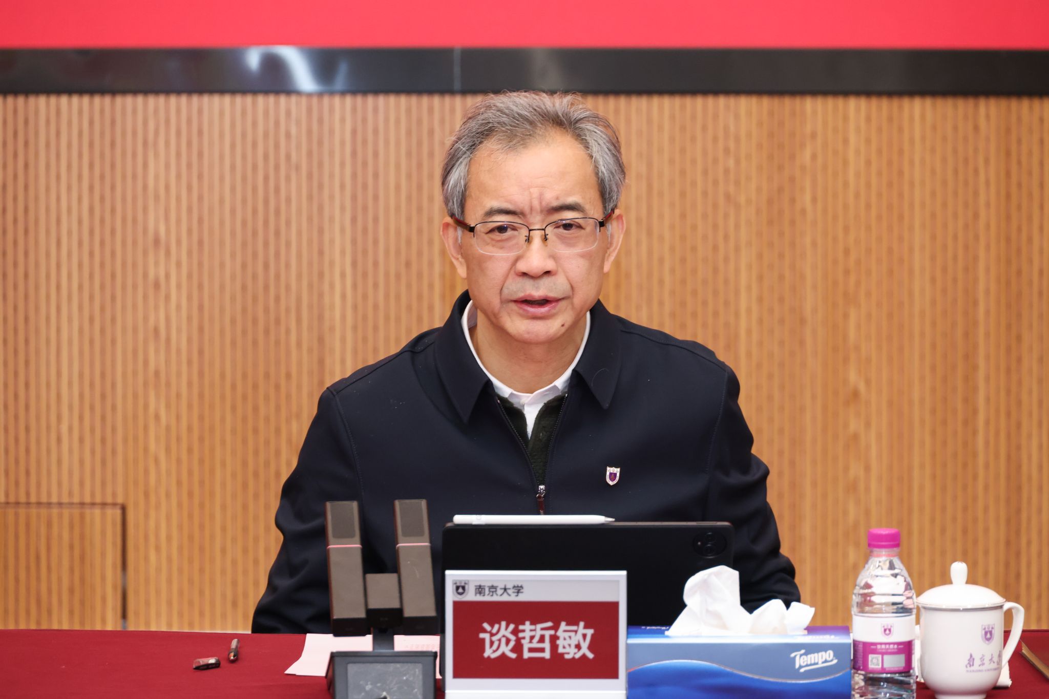 谈哲敏指出,思政课是塑造青年学生世界观、人生观、价值观的主渠道,思政课教师责任重大、使命光荣。他结合近期讲授思政课的感受提出三点意见:一是要立足学生独特的学习旨趣,结合不同学科专业学生的知识背景、思维特点与发展方向,因校施教,因材施教,推动思政教育与专业教育有机融合,建设具有特质的思政课。二是要坚持性和学理性的有机融通,讲清楚新时代特色社会主义思想的逻辑起点、理论源头、体系框架和哲学基础。三要坚持“进课堂”更“进头脑”,“教知识”更“启思维”,引导学生自觉运用新时代特色社会主义思想的观点方法分析新问题、学习新理论、实现新作为。
